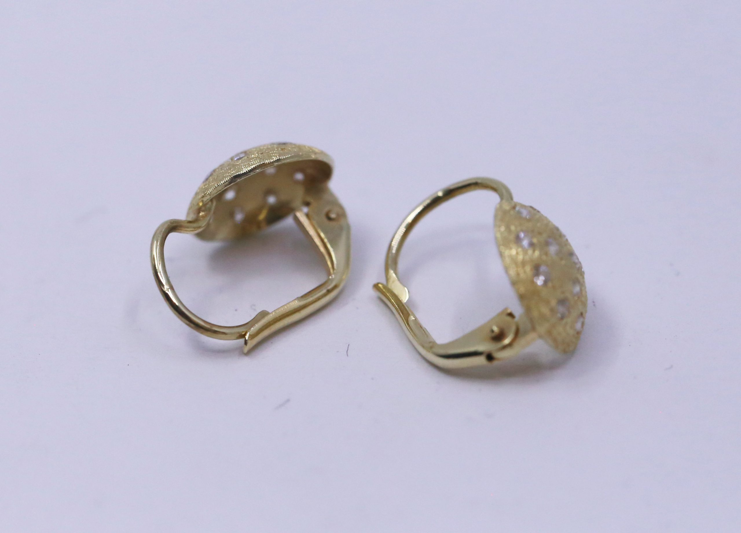 Zlaté dámské náušnice polo. Ryzost: 18k (750). Váha: 2,17g. Stav: použitý, ověřeno puncovní značkou.