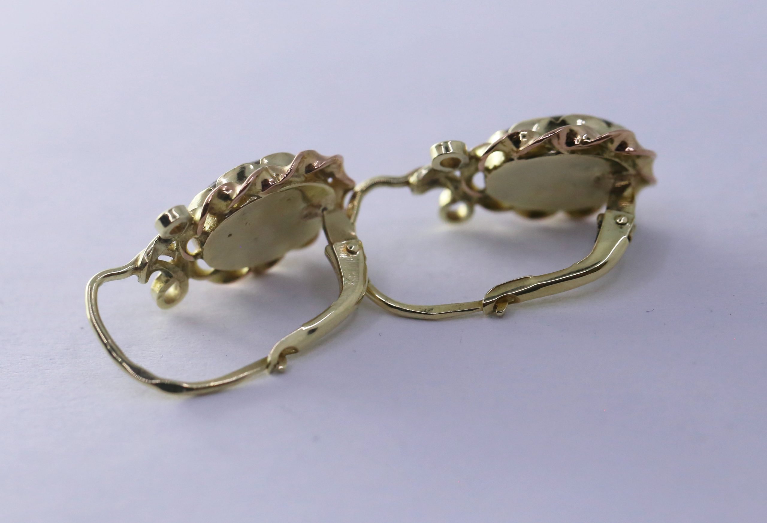 Zlaté dámské náušnice retro style. Ryzost: 14k (585). Váha: 4,6g. Stav: použitý, ověřeno puncovní značkou.