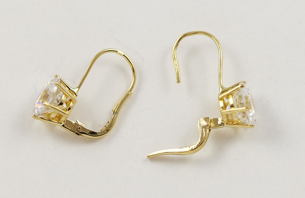 Nabízíme zlaté náušnice s velkými čirými kameny.